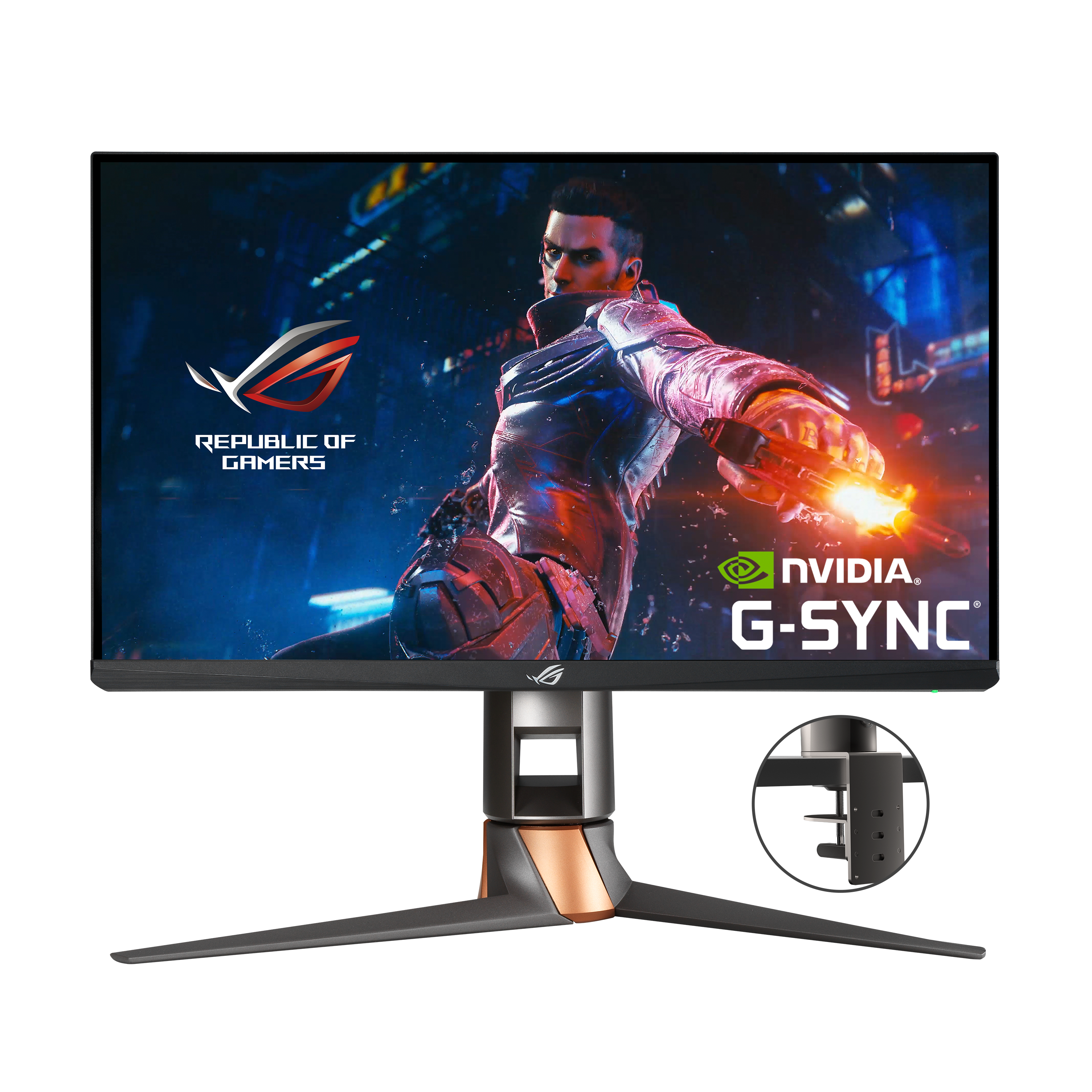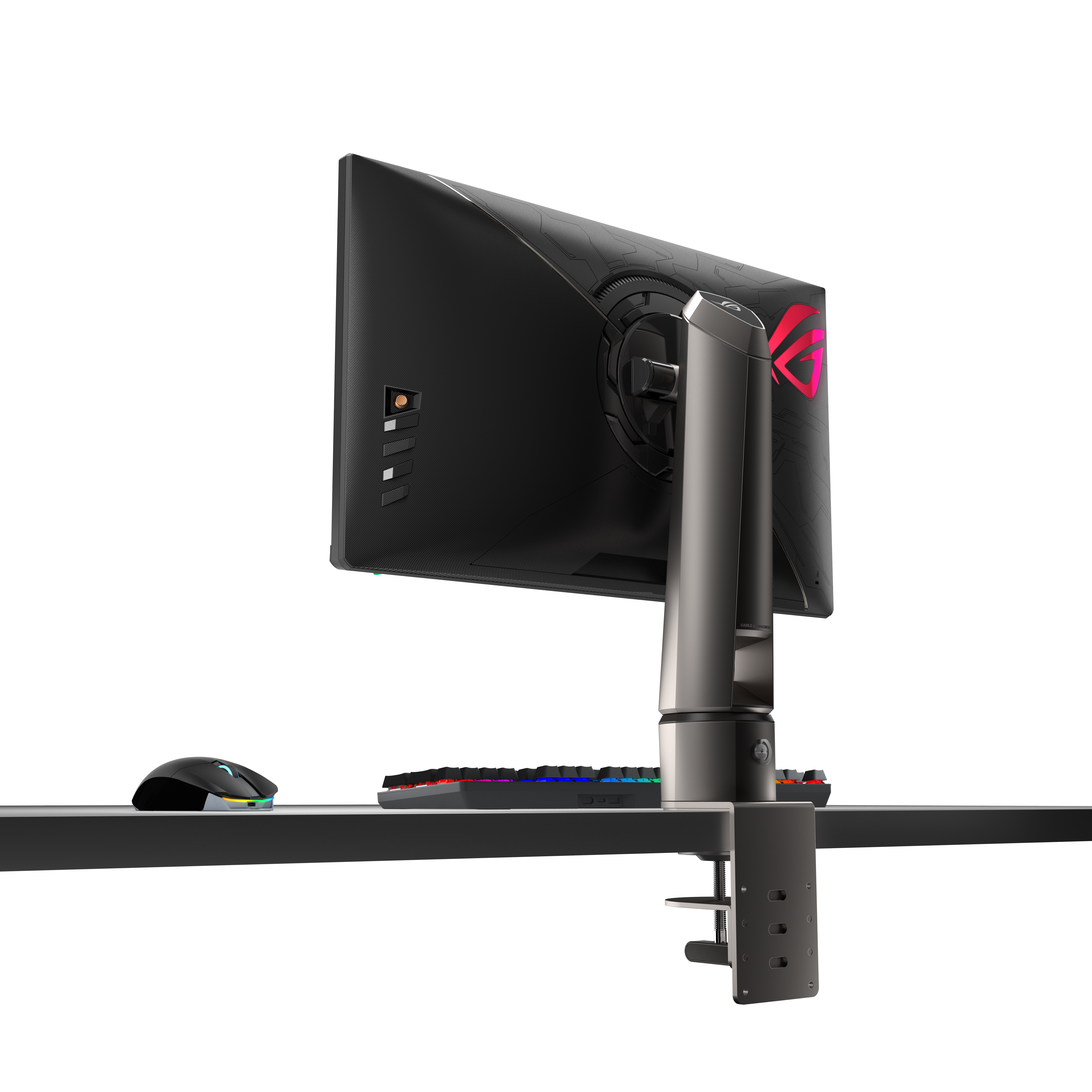 Oltre a Reflex Latency Analyzer, ROG Swift 360Hz PG259QNR ha un kit di montaggio su scrivania che consente di risparmiare tantissimo spazio. ROG Desk Mount Kit può essere cambiato con il supporto del monitor in soli tre semplici passaggi e ha un morsetto a C che si apre fino a 80 mm di larghezza per compatibilità con la maggior parte delle scrivanie.