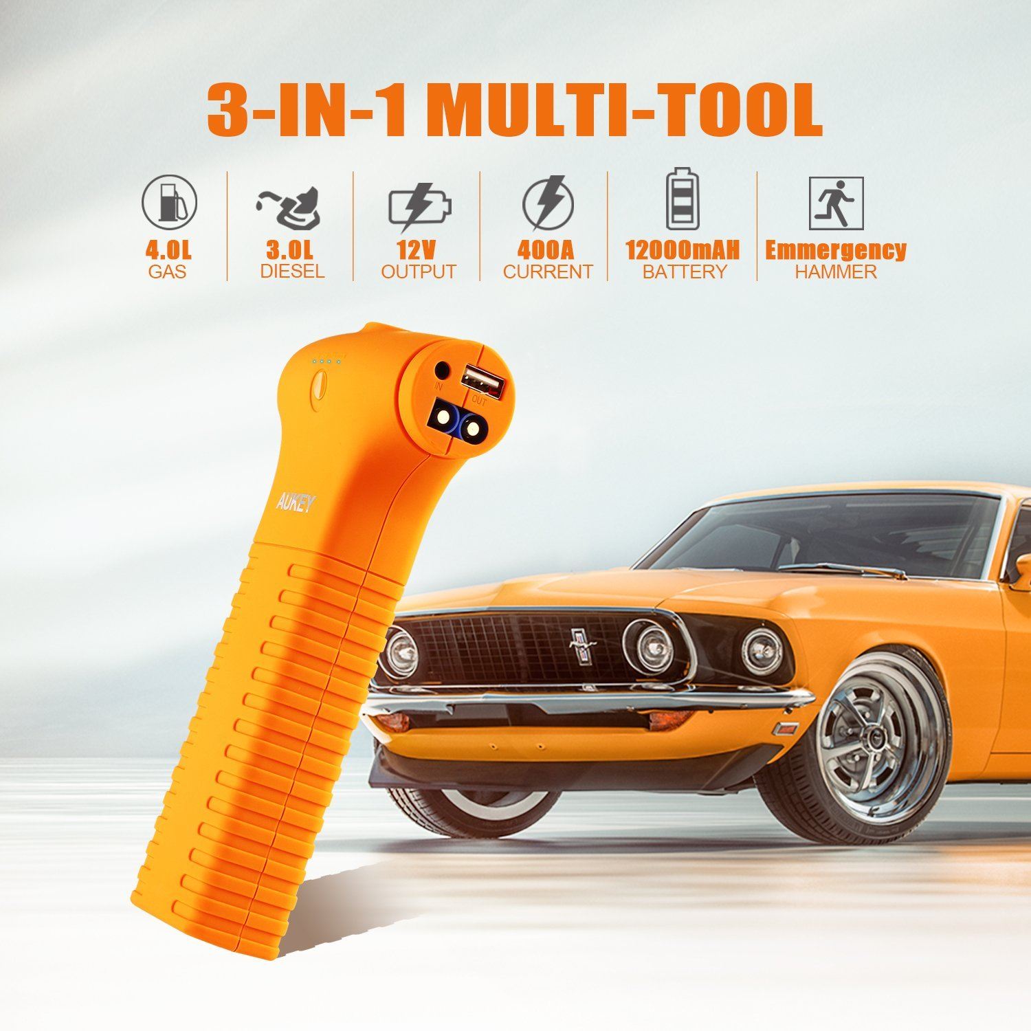 Recensione avviatore di emergenza per auto Aukey, con martello di emergenza